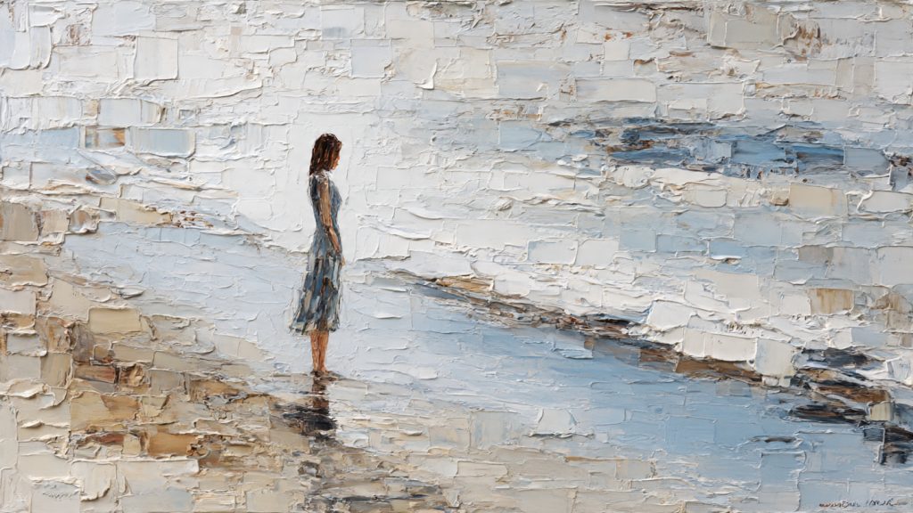 A gentle emergence of clarity after surrender. The artist sees not with eyes, but with the heart’s tide.