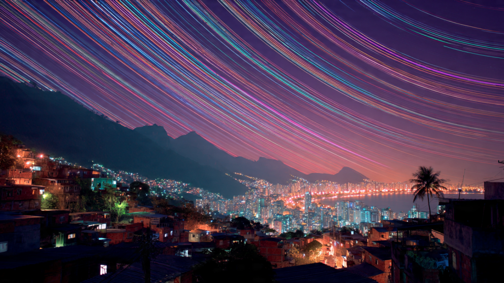 The hills never sleep. At night, when the city lights below shimmer like coins thrown into a dark sea, the favelas hum with their own restless music. I used to lie awake on the thin mattress in my mother’s room, listening to the tamborzão bleed through the cracked walls. The beat rattled the tin roof, the floorboards, even my ribs. It was like the hill itself was alive — whispering, warning, reminding us that survival was a rhythm you never stopped dancing to.