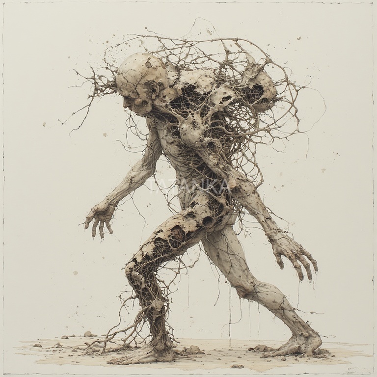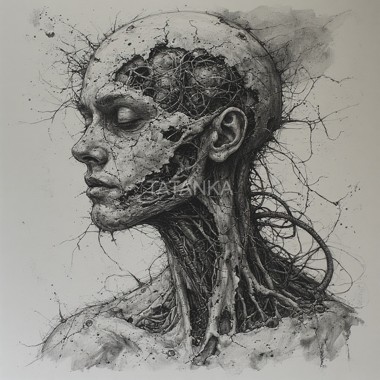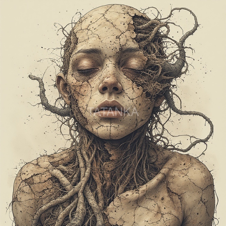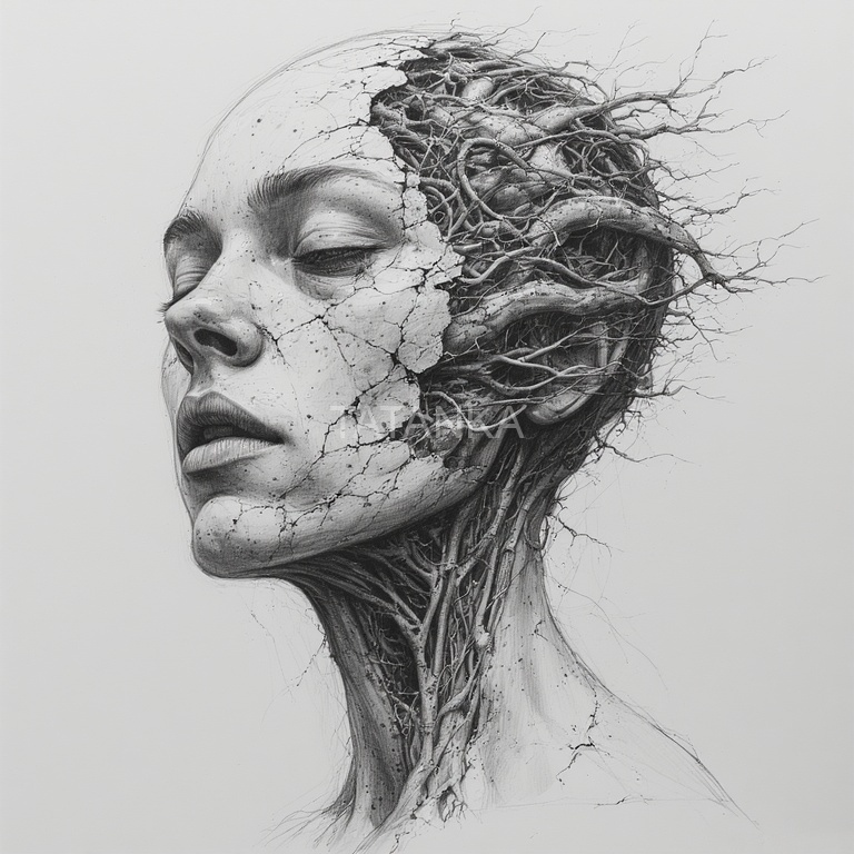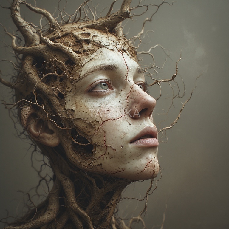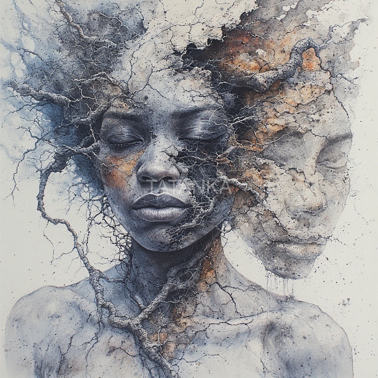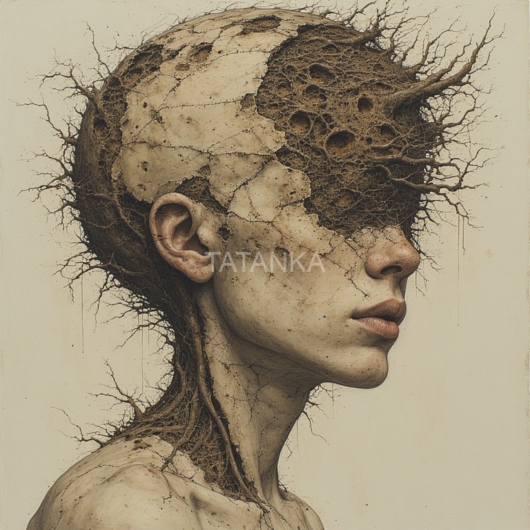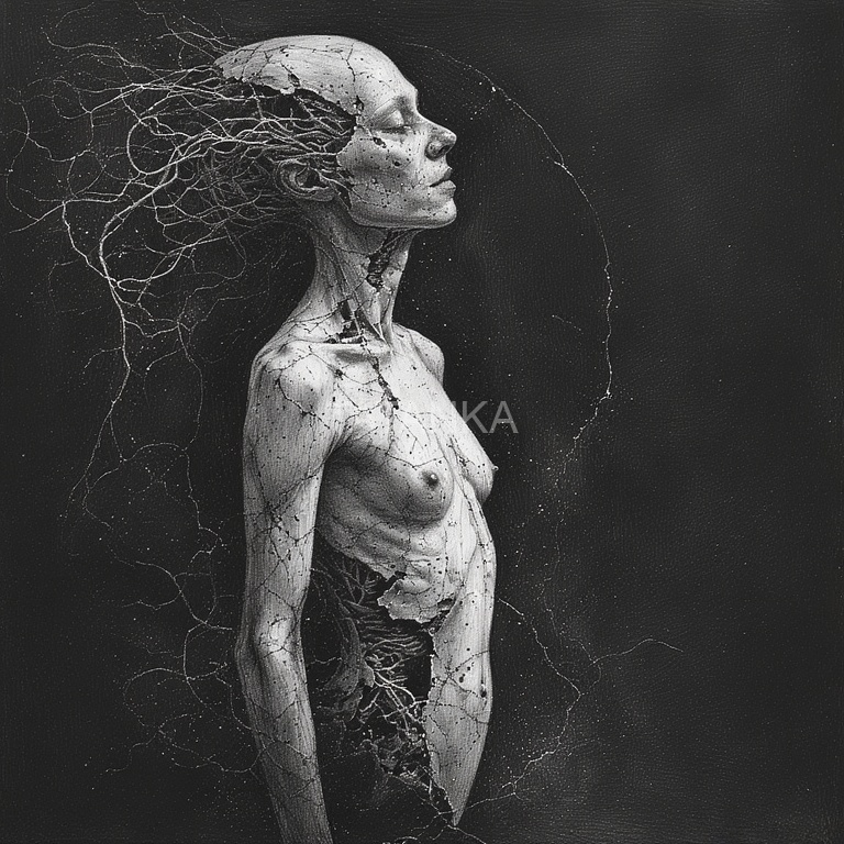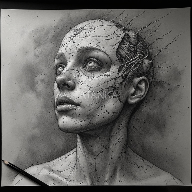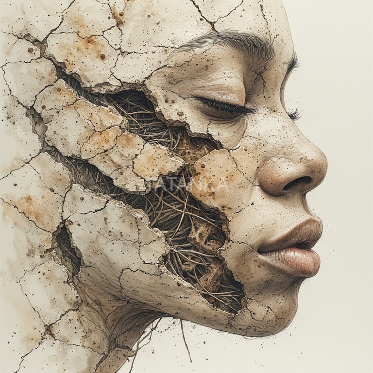 Identity is not treated as a stable core but as a surface under strain. Symmetry is often incorrect. Two expressions may coexist on one face. Eyes may gaze toward different temporal moments. Gender can be ambiguous. Age is indeterminate. The edges of the body sometimes dissolve, as if the figure cannot fully agree with itself.