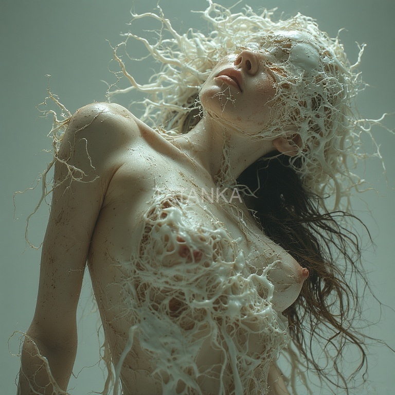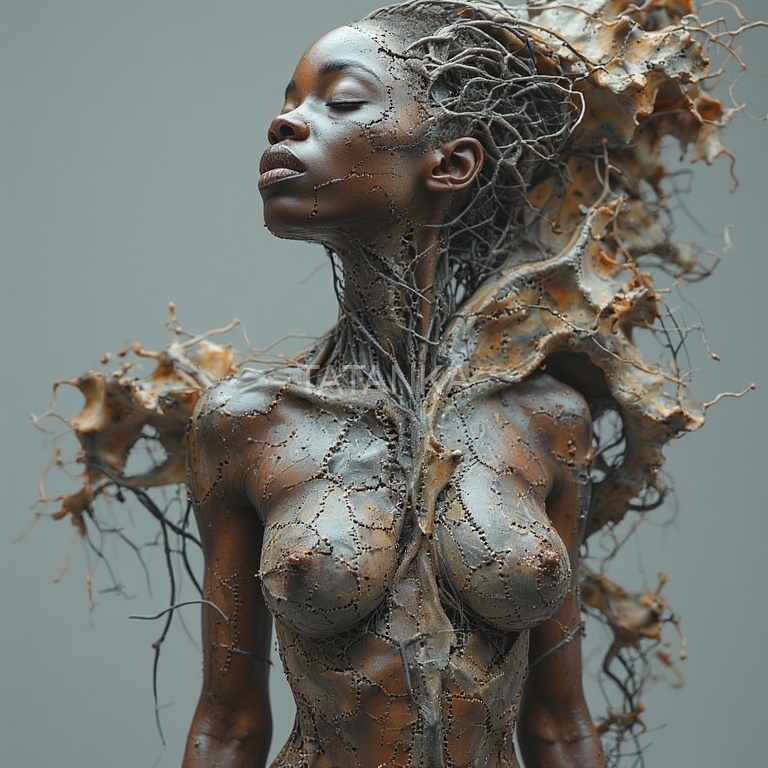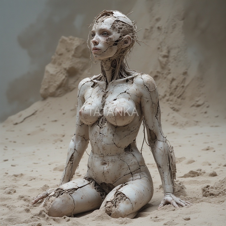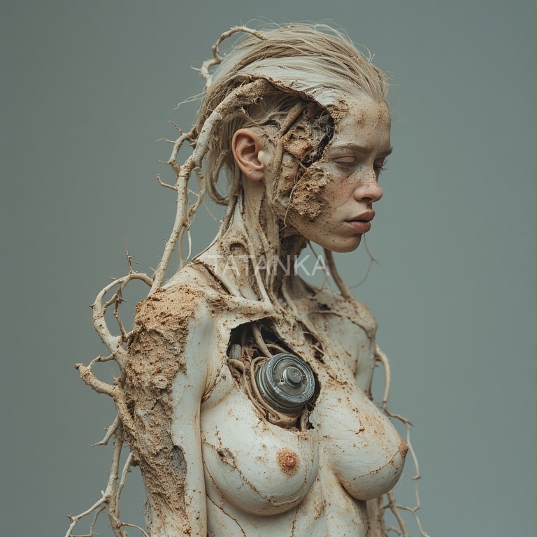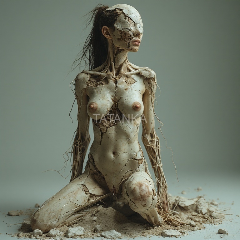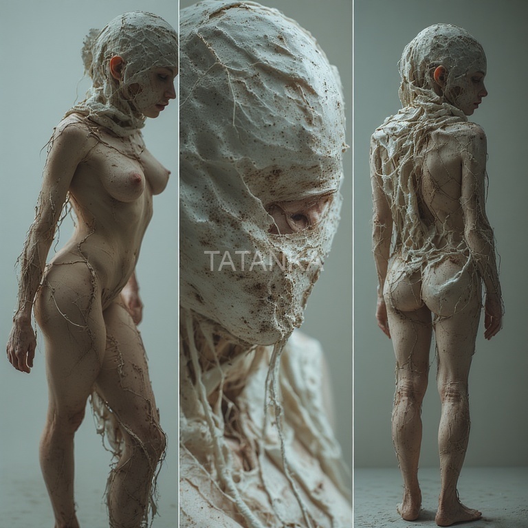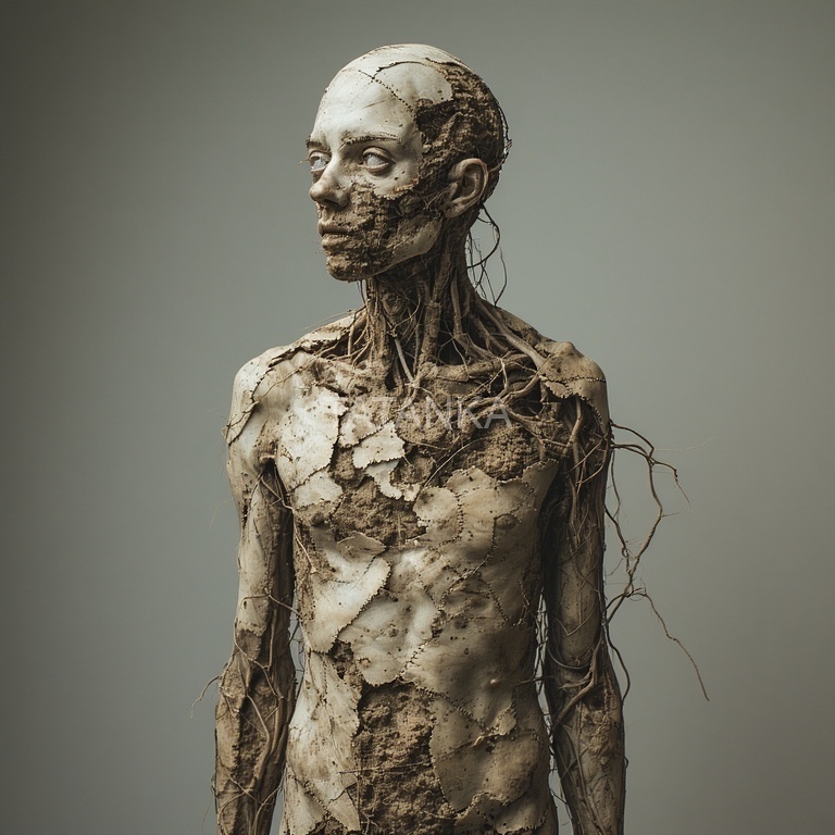 A critical element of this work is its insistence on craft. Despite being generated through artificial systems, the images emphasize hand-made qualities: clay-like textures, waxy surfaces, fabric impressions, rough assembly. Bodies appear built, repaired, and then partially dismantled.