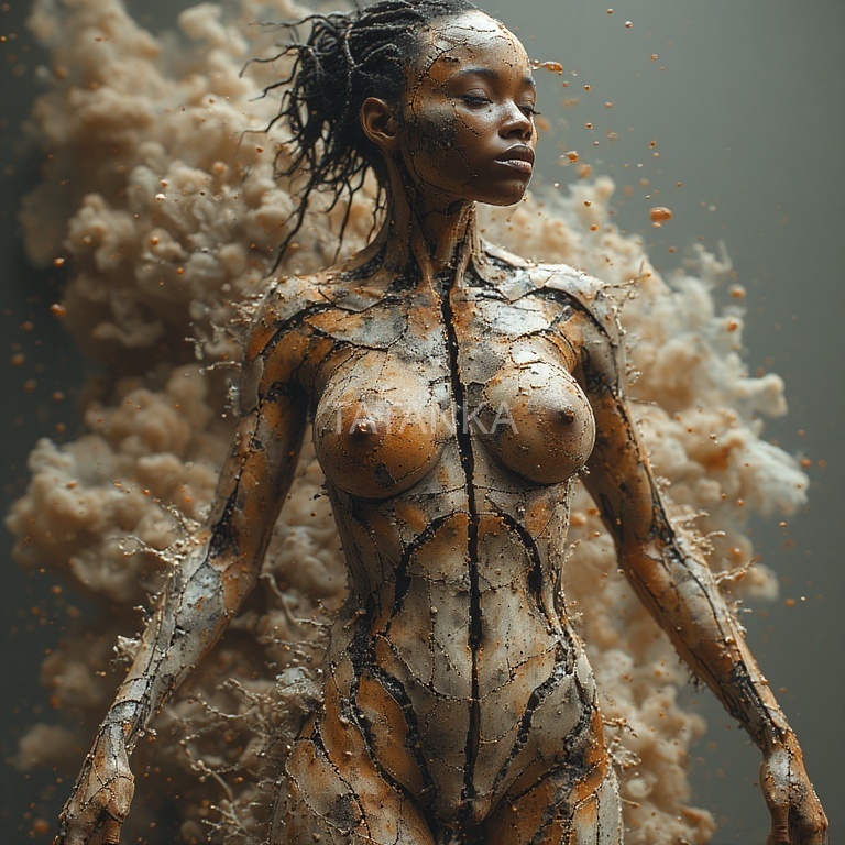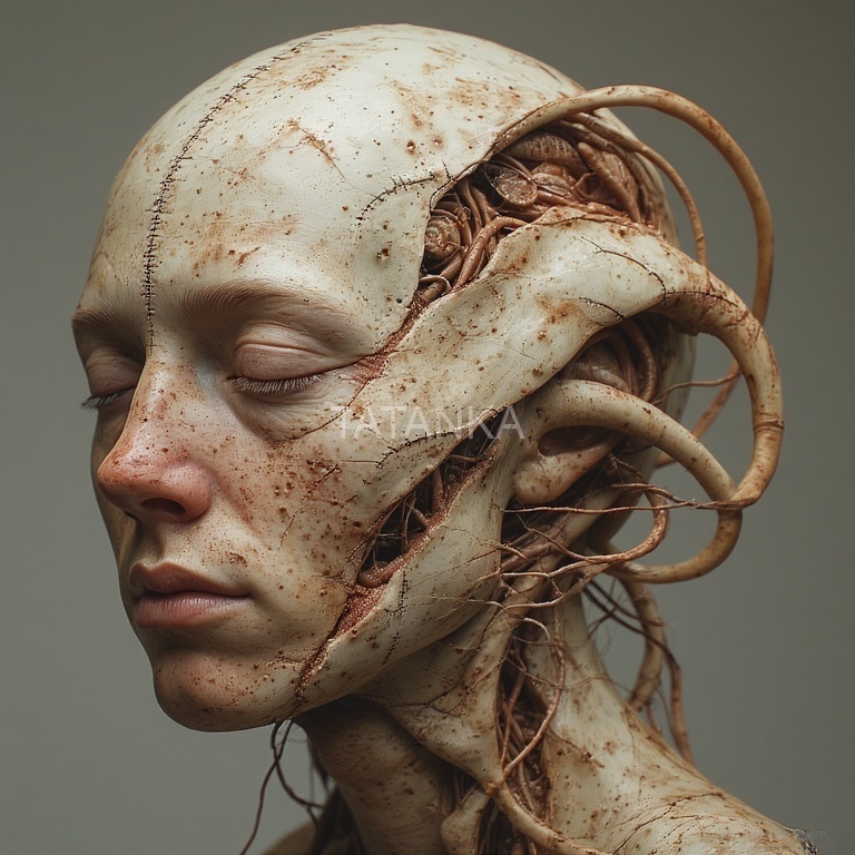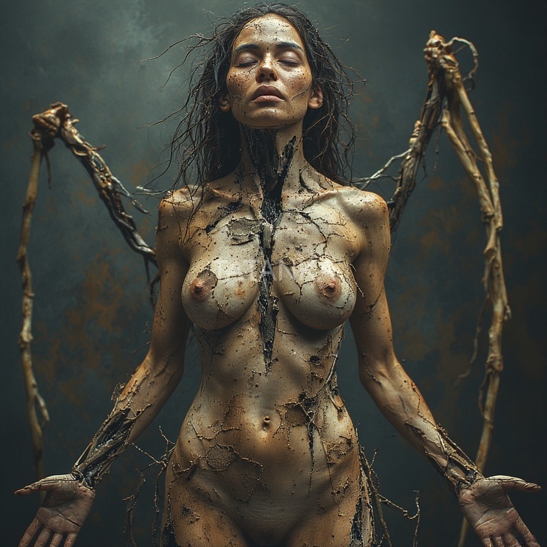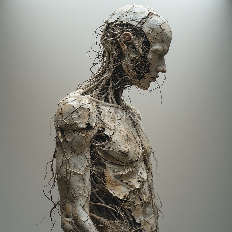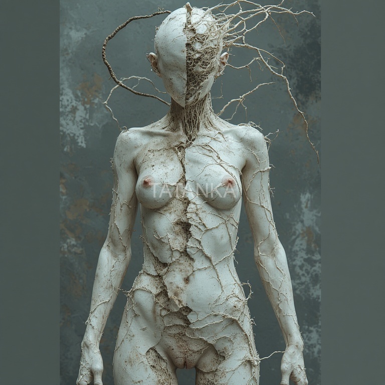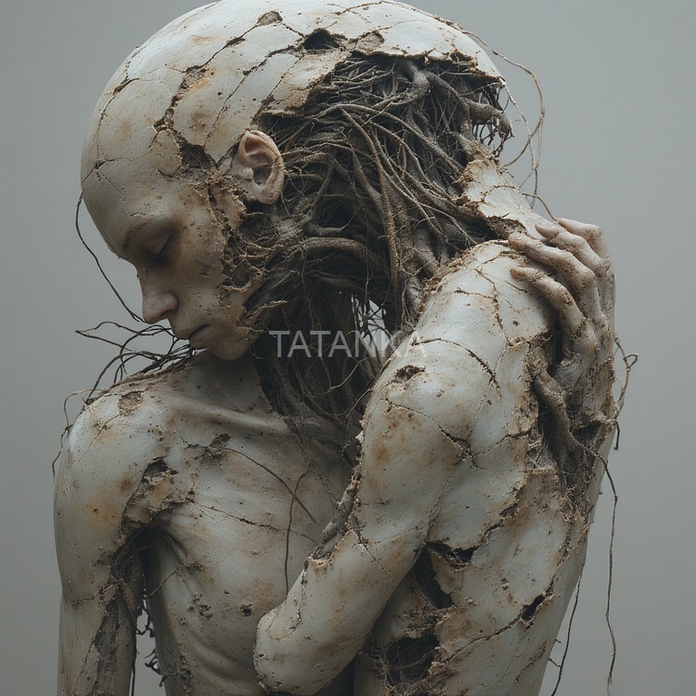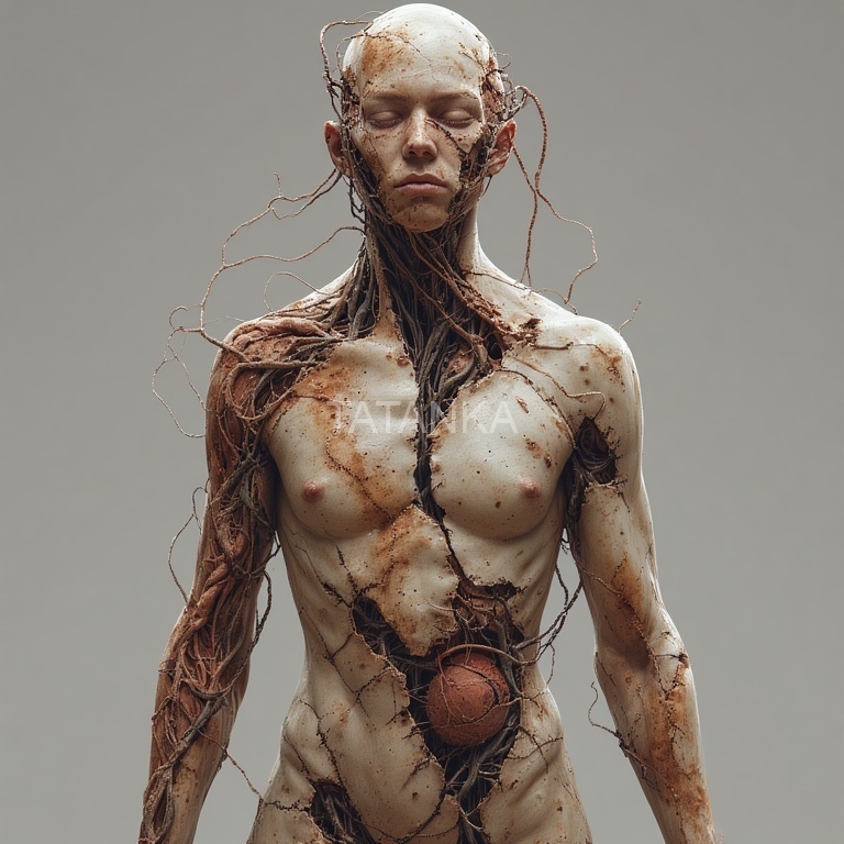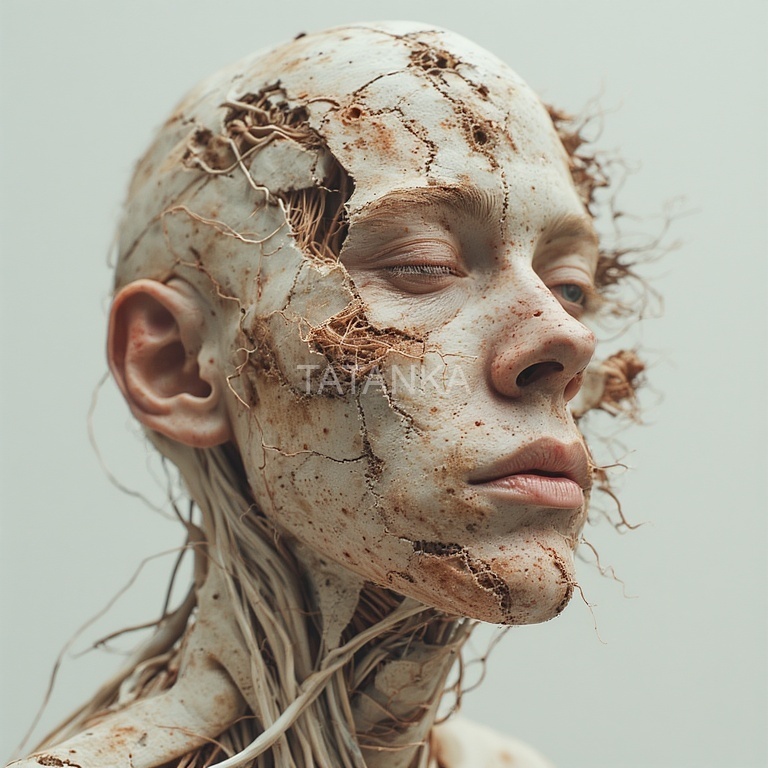A critical element of this work is its insistence on craft. Despite being generated through artificial systems, the images emphasize hand-made qualities: clay-like textures, waxy surfaces, fabric impressions, rough assembly. Bodies appear built, repaired, and then partially dismantled.