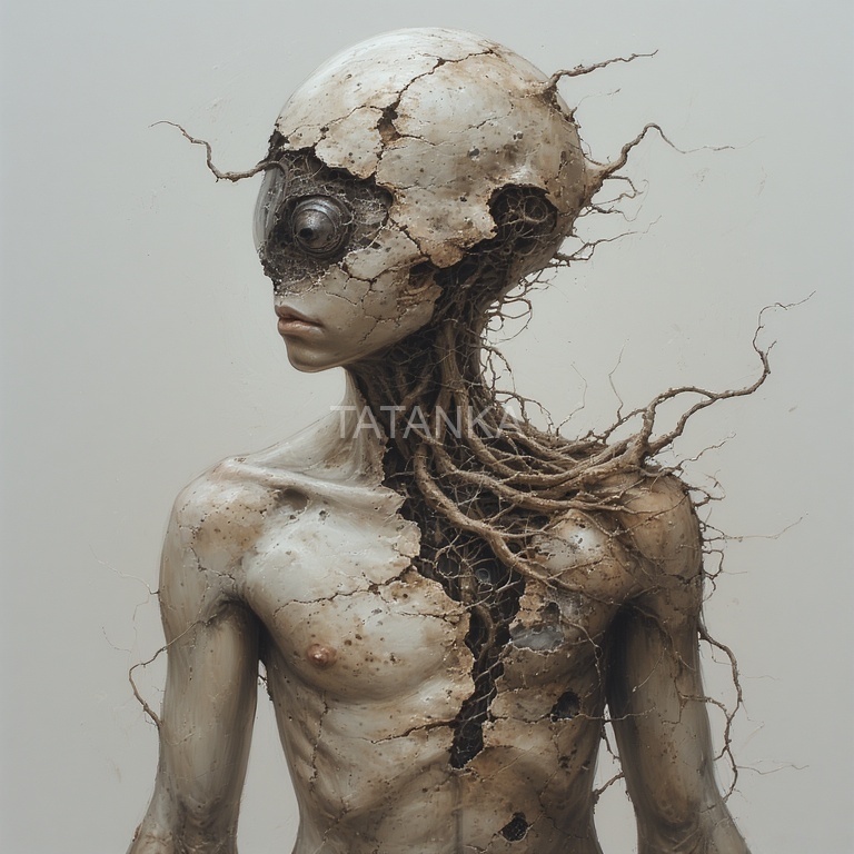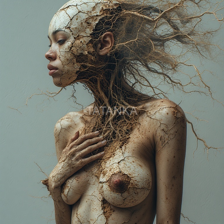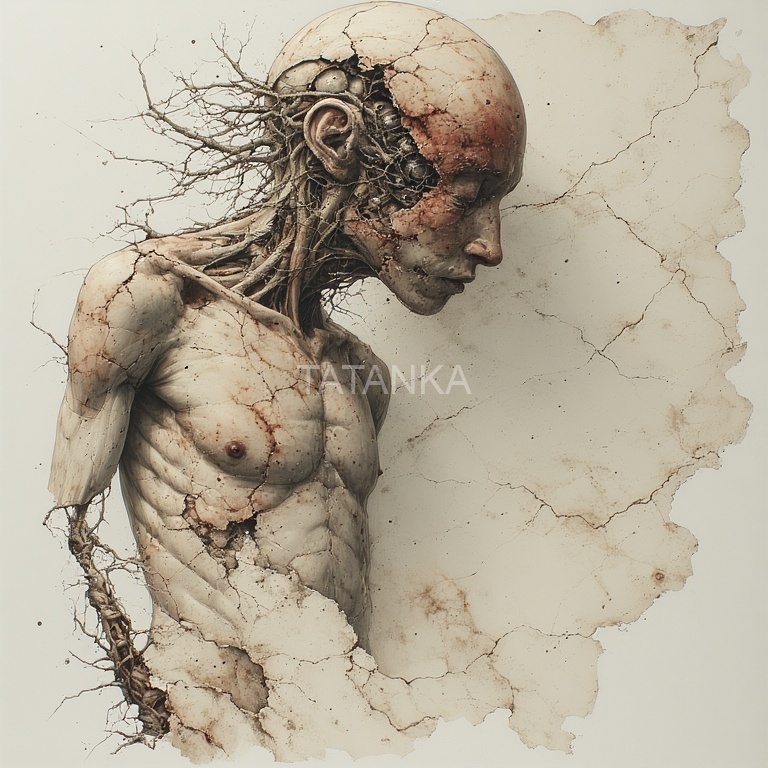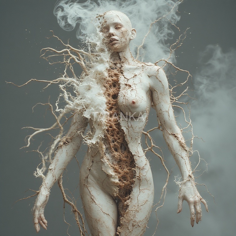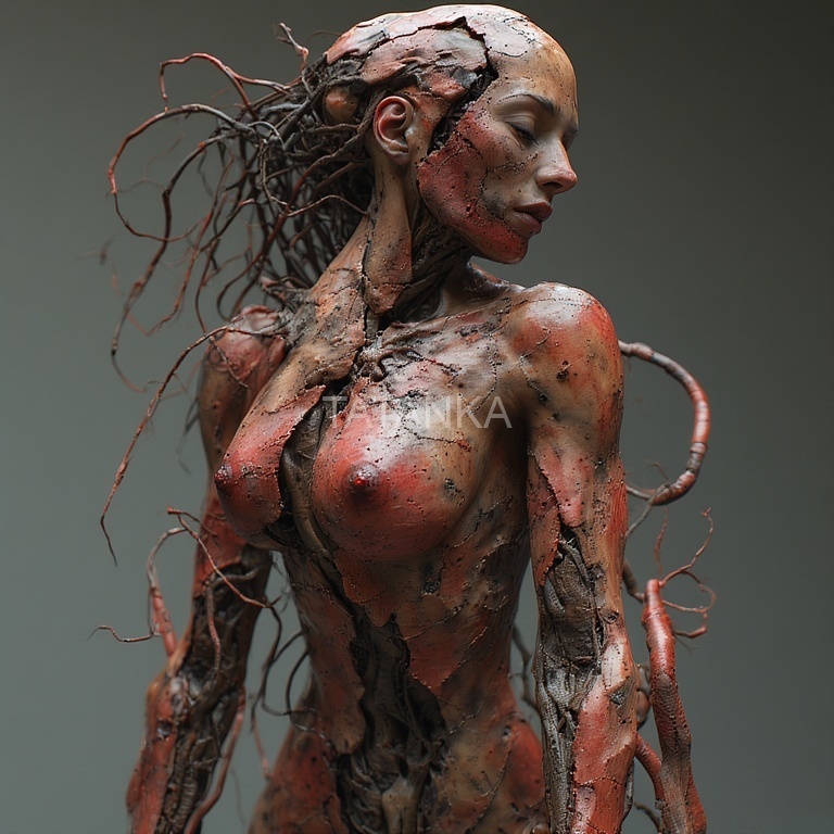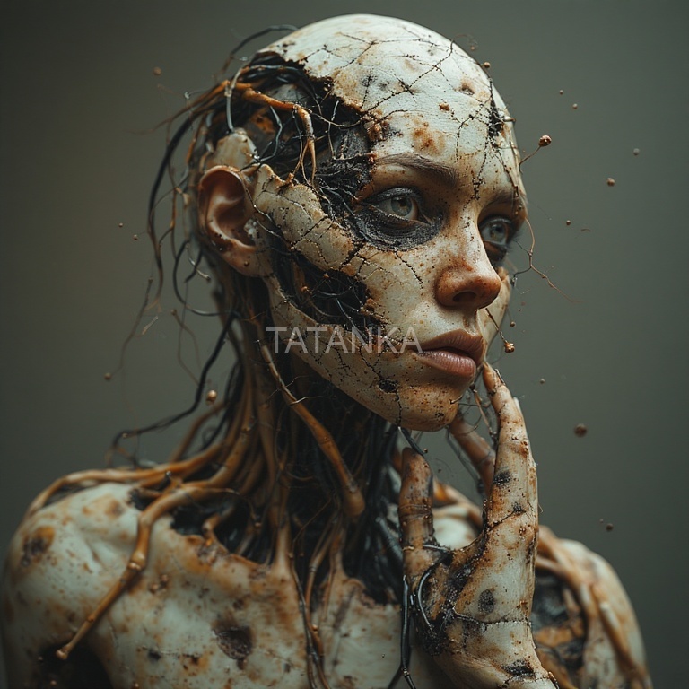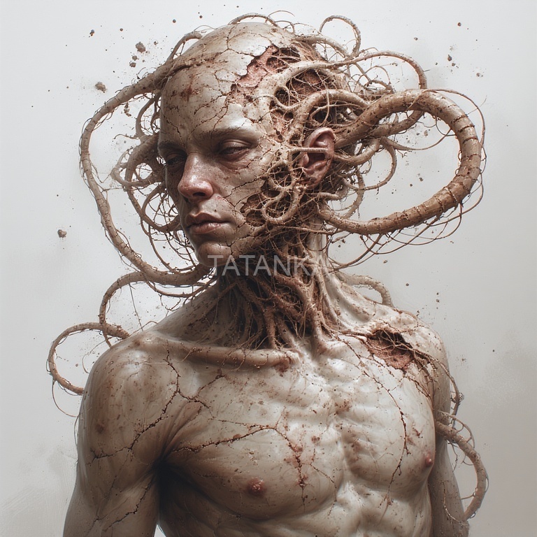 A critical element of this work is its insistence on craft. Despite being generated through artificial systems, the images emphasize hand-made qualities: clay-like textures, waxy surfaces, fabric impressions, rough assembly. Bodies appear built, repaired, and then partially dismantled.